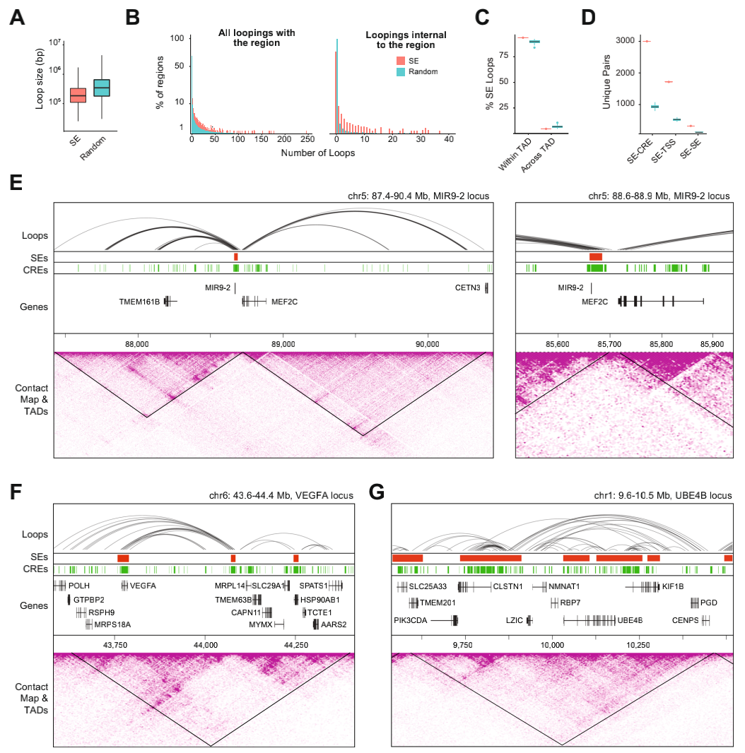 4、SE在TAD內(nèi)部loops富集并參與基因表達調(diào)控