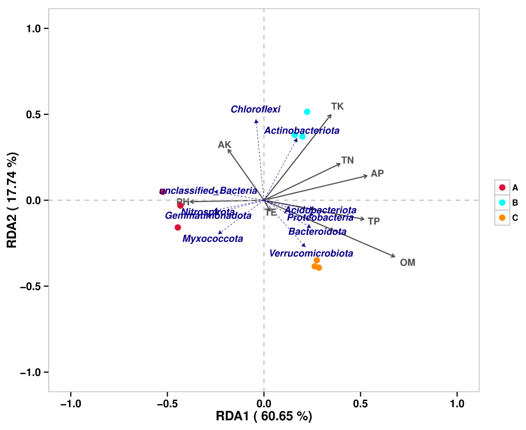 RDA/CCA分析:RDA(Redundancy analysis)/CCA(Canonical Correspondence analysis)是基于對應(yīng)分析發(fā)展的一種排序方法,RDA分析基于線性模型,CCA分析基于單峰模型,主要用來反映菌群或樣品與環(huán)境因子之間的關(guān)系。根據(jù)物種分布變化,選擇最*的分析模型。