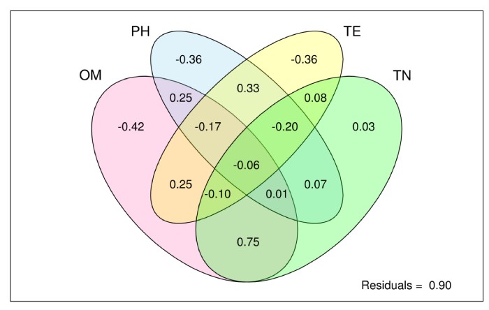 VPA分析(方差分解分析):VPA,全稱Variance Partitioning Analysis,中文稱為方差分解分析,該分析的目的是確定指定的環(huán)境因子對群落結(jié)構(gòu)變化的解釋比例。通常在CCA/RDA的排序分析方法可以得到所有參與分析的環(huán)境因子對群落變化的解釋比例。使用R語言vegan包(version:2.3-0),varpart函數(shù)進(jìn)行分析;分析前首先需要對環(huán)境因子進(jìn)行一個(gè)分類,一般支持2-4類,默認(rèn)使用大于等于2個(gè)環(huán)境因子進(jìn)行此分析。
