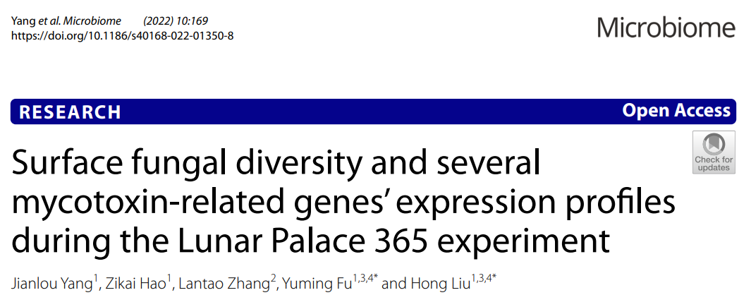 研究內(nèi)容:中國月宮一號(LP1)是集高效植物栽培、動物蛋白生產(chǎn)、尿氮回收、固體廢物生物轉(zhuǎn)化為一體的地面生物再生生命支持系統(tǒng)(BLSS)試驗臺。迄今為止,還沒有基于分子方法的詳細(xì)調(diào)查BLSS棲息地中的真菌群落和霉菌毒素潛力。為了確保實際太空任務(wù)的安全BLSS設(shè)計,通過ITS1擴增子測序和qPCR技術(shù)分析了月宮365項目期間LP1表面真菌組和霉菌毒素的潛力。與其他封閉的生境相比,LP1系統(tǒng)在真菌群落多樣性方面表現(xiàn)出明顯的差異,真菌的alpha多樣性更高,群落結(jié)構(gòu)也不同。由于不同居住群體的存在,LP1生境的表面真菌群落存在著明顯的差異。然而,在有不同居住者的植物艙中,真菌群落沒有明顯的差異。溯源分析顯示,LP1中的大部分表面真菌都來自于植物。不管居住者或地點的差異,霉菌毒素基因拷貝數(shù)沒有明顯差異。研究顯示,植物是表面真菌微生物組的關(guān)鍵來源;然而,居住者的更替會引起B(yǎng)LSS中表面真菌群落的重大擾動。種植植物減少了真菌的波動,保持了表面真菌微生物群的健康平衡和霉菌毒素的潛力。