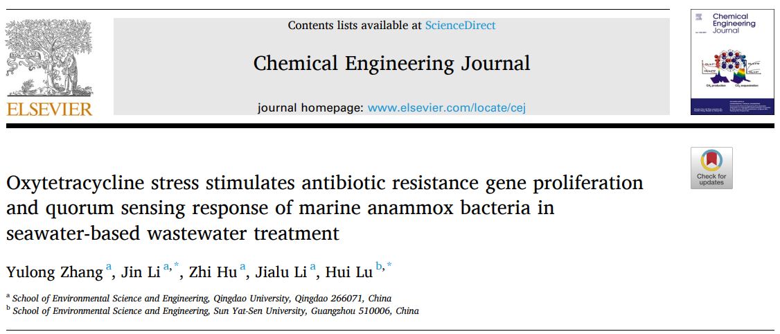 研究內(nèi)容:海水型廢水的特點是含有高濃度的土霉素(OTC)和鹽,這對傳統(tǒng)的生物脫氮過程是一個巨大的挑戰(zhàn)。由于海洋無氧菌(MAB)具有良好的耐鹽性,最近被用于從含鹽廢水中脫氮。本研究首次集中研究了OTC對MAB從基于海水的廢水中脫氮的影響,特別強調(diào)了抗生素抗性基因(ARG)的擴散和群體感應(yīng)(QS)反應(yīng)。在低劑量的OTC(≤7 mg L-1)下,MAB具有良好的耐受性,總的脫氮效率保持在77%。當(dāng)OTC劑量達(dá)到22 mg L-1時,MAB的活性被明顯抑制。當(dāng)OTC劑量從0 mg L-1增加到22時,MAB的相對豐度從14.41%急劇下降到4.1%。相反,隨著OTC含量的增加,抗生素耐藥菌逐漸成為反應(yīng)器中的優(yōu)勢種群,同時伴隨著ARG相對豐度的增加。基于MAB的菌群對OTC毒性的耐受性因ARGs的高表達(dá)而增強。此外,更多的細(xì)胞外聚合物質(zhì)被分泌出來,以增強ammox顆粒對OTC毒性的耐受性,這被信號分子(3OC6-HSL)的大量釋放所促進(jìn)。此外,在OTC脅迫下,hdh和tetM的表達(dá)受到QS的調(diào)控,增強了基于MAB的菌群的耐受性。因此,沼氣團(tuán)對OTC的耐受性主要歸因于增殖的ARG和活躍的QS。這項工作開發(fā)了MAB在基于海水的廢水處理中的巨大潛力。