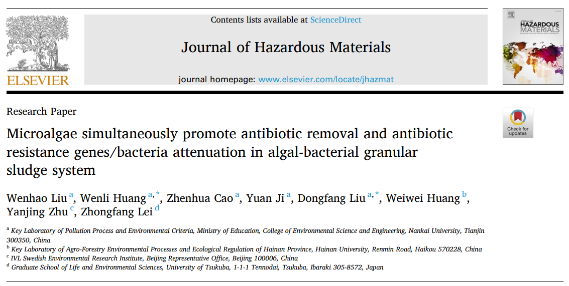 研究內(nèi)容:本研究調(diào)查了微藻生長對抗生素去除的影響以及藻類-細(xì)菌顆粒污泥(ABGS)系統(tǒng)中抗生素耐藥基因(ARGs)/ ARGs宿主細(xì)菌的衰減。在四環(huán)素(TC)和磺胺嘧啶(SDZ)混合物(2-4 mg/L)的存在下,微藻可以在細(xì)菌顆粒污泥(BGS)上生長,形成ABGS,葉綠素-a含量達(dá)到了7.68-8.13 mg/g-VSS。ABGS對TC和SDZ的去除率高達(dá)79.0%和94.0%,比BGS的去除率高4.3-5.0%。宏基因組分析表明,BGS中與TC/SDZ相關(guān)的ARG和移動元件(MGEs)的相對豐度比ABGS中的高56.1%和22.1%。從顆粒中共檢測到26個ARG,它們被鑒定為與46個宿主細(xì)菌有關(guān)。26個ARG中的13個和46個宿主中的13個分別是和宿主共享的ARG。BGS中宿主細(xì)菌的總相對豐度比ABGS中的高30.8%。Scenedesmus和Chlorella是主要的微藻,可能會減少ARG宿主的多樣性??偟膩碚f,ABGS是一種有前途的生物技術(shù),用于含抗生素的廢水處理。
