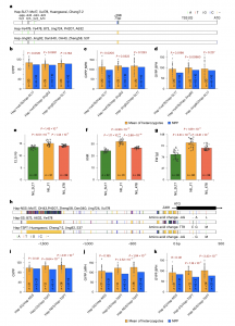 為了研究玉米非核心基因組變異與雜種優(yōu)勢之間的關(guān)系,作者得到了14個FILs雙列雜交的91個F1S,并收集了3個不同環(huán)境下的產(chǎn)量數(shù)據(jù)。表型分析表明,以單株產(chǎn)量(GYPP)計算,所有F1雜種均表現(xiàn)出超過雙親平均值的中親優(yōu)勢(MPH)和超過較好親本的超親優(yōu)勢(BPH)(圖5a)。