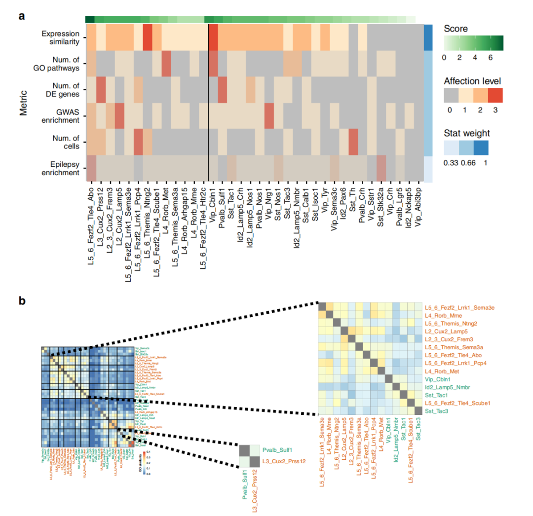 該項(xiàng)研究揭示了癲癇對(duì)神經(jīng)元轉(zhuǎn)錄的不同影響—即雖然許多亞型表現(xiàn)出輕微的基因表達(dá)變化,但其對(duì)一些特定的SUB型主要神經(jīng)元和GABA能間神經(jīng)元產(chǎn)生了很大的影響。