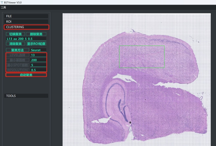 6)最后得到框選到的感興趣區(qū)域的聚類結(jié)果,點(diǎn)擊“ROI”切換為“瀏覽模式”可以通