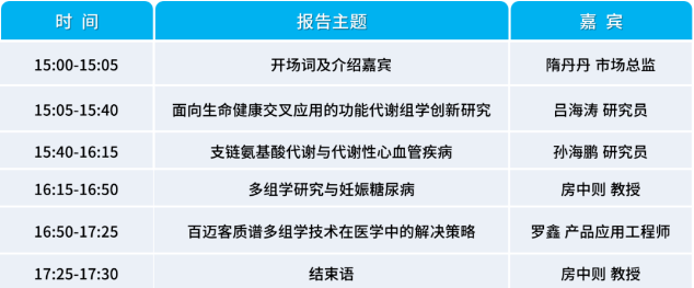 2023年3月22日中國生物物理學(xué)會(huì)腸道菌群分會(huì)房中則副秘書長牽頭與百邁客生物聯(lián)合舉辦“?質(zhì)譜技術(shù)與多組學(xué)前沿應(yīng)用線上研討會(huì)”。本次研討會(huì)由百邁客醫(yī)學(xué)市場總監(jiān)隋丹丹主持,邀請了上海交通大學(xué)系統(tǒng)生物醫(yī)學(xué)研究院呂海濤研究員,天津醫(yī)科大學(xué)孫海鵬研究員,天津醫(yī)科大學(xué)房中則教授,共同探討質(zhì)譜多組學(xué)技術(shù)在疾病研究中應(yīng)用。