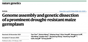 2023年2月21日,中國農業(yè)大學秦峰教授團隊在Nature Genetics在線發(fā)表了題為“Genome assembly and genetic dissection of a prominent drought-resistant maize germplasm” 的研究論文。報告了玉米抗旱優(yōu)良種質基因組CIMBL55組裝和注釋結果,揭示其優(yōu)良抗旱性的遺傳基礎。中國農業(yè)大學秦峰課題組博士后田甜和博士生王書會為論文共同第一作者,中國農業(yè)大學秦峰教授為通訊作者。百邁客完成了PacBio、Hi-C測序及相關分析工作。