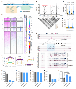 對B73、Mo17和CIMBL55三個材料進行全基因組亞硫酸氫鹽測序(BS-seq),準確評估其基因組的DNA甲基化狀態(tài)。mCG和mCHG的甲基化水平在全基因組中較高,但在基因邊界處明顯下降。相比之下,包括RNA-TE區(qū)域在內的基因組中mCHH水平普遍較低,而DNA-TE元件中mCHH水平較高,表明在這兩種類型的TEs中,CHH甲基化的調控機制不同。
