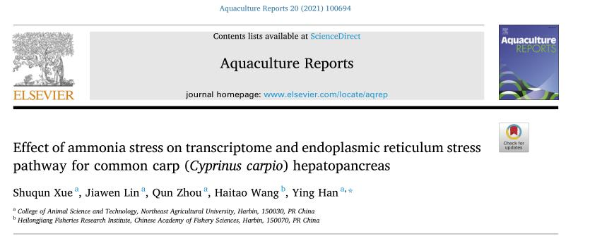 英文標題:Effect of ammonia stress on transcriptome and endoplasmic reticulum stress pathway for common carp (Cyprinus carpio) hepatopancreas