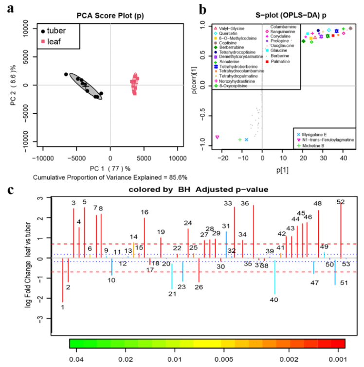 延胡索提取物的塊莖和葉組QTOF-MS數(shù)據(jù)的代謝組學多元分析