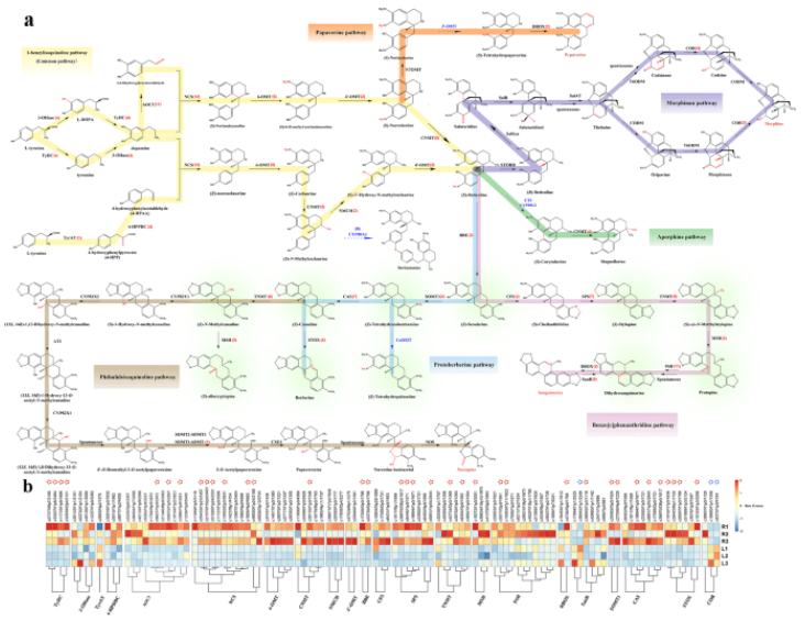 對合成原小檗堿型芐基異喹啉生物堿的相關(guān)基因進行了挖掘,為后期利用合成生物學與植物代謝工程生產(chǎn)延胡索中具有鎮(zhèn)痛效果的痕量化合物奠定了基礎(chǔ)。