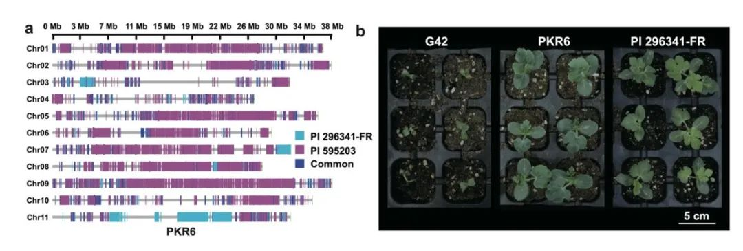 圖4-遠緣雜交創(chuàng)制優(yōu)良抗病種質(zhì)PKR6基因組及枯萎病抗性表型