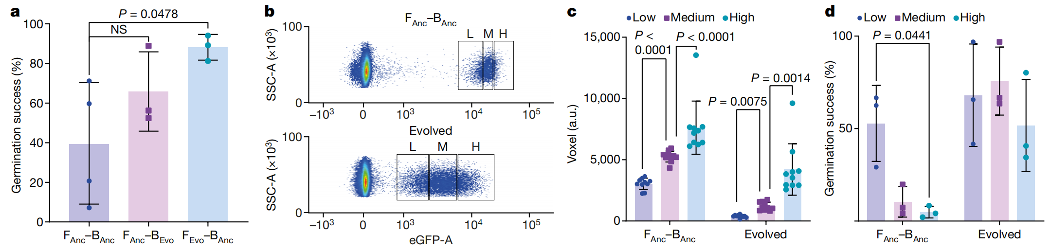 該研究將細(xì)菌 Mycetohabitans rhizoxinica?植入真菌?Rhizopus microsporus?中,發(fā)現(xiàn)這種細(xì)菌能夠在真菌細(xì)胞中繁殖并垂直傳遞給后代。通過(guò)適應(yīng)性實(shí)驗(yàn)室進(jìn)化實(shí)驗(yàn),研究人員發(fā)現(xiàn)這種人工誘導(dǎo)的內(nèi)共生關(guān)系可以通過(guò)正向選擇來(lái)提高其穩(wěn)定性和適應(yīng)性。進(jìn)化后的真菌產(chǎn)生了與天然宿主相關(guān)的代謝產(chǎn)物,證明了通過(guò)人工誘導(dǎo)的內(nèi)共生關(guān)系可以將代謝功能轉(zhuǎn)移到新的宿主中。