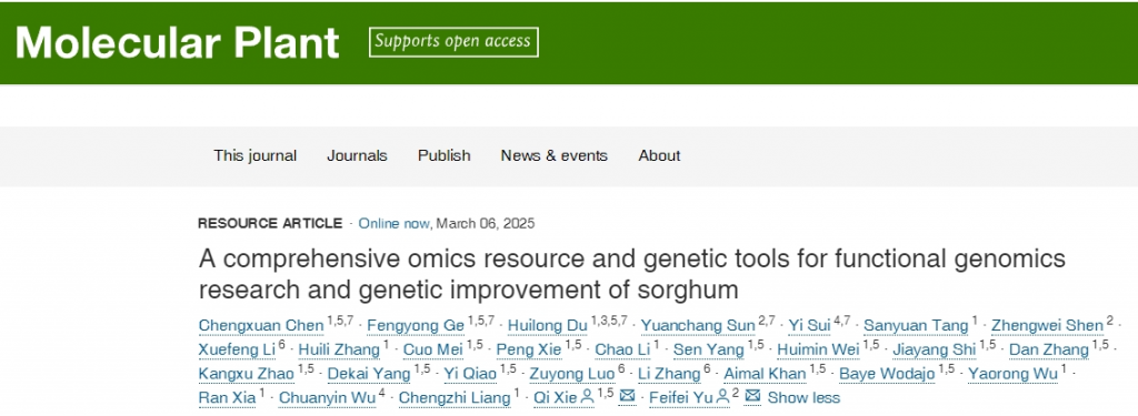 2025年3月7日,中國科學(xué)院遺傳與發(fā)育生物學(xué)研究所謝旗研究員團(tuán)隊(duì)聯(lián)合中國農(nóng)業(yè)大學(xué)于菲菲教授團(tuán)隊(duì)在Molecular Plant發(fā)表了研究論文。題為“A comprehensive omics resource and genetic tools for functional genomics research and genetic improvement of sorghum”。該研究基于高粱自交系E048,構(gòu)建了一個(gè)涵蓋“基因組-表達(dá)譜-突變庫-轉(zhuǎn)化體系”四位一體的綜合性研究資源平臺,整合了端粒到端粒(T2T)基因組、多組織基因表達(dá)圖譜、飽和EMS突變體庫以及農(nóng)桿菌介導(dǎo)的遺傳轉(zhuǎn)化體系,為高粱功能基因組學(xué)研究與遺傳改良育種提供了系統(tǒng)化的工具和數(shù)據(jù)支持。