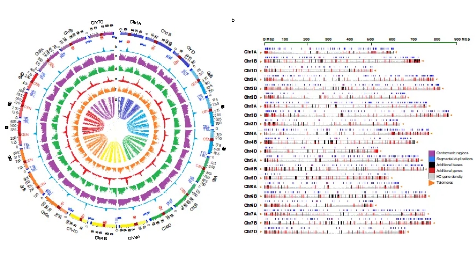 圖1.六倍體小麥T2T基因組精確完整圖,即CS-IAAS版本1.0