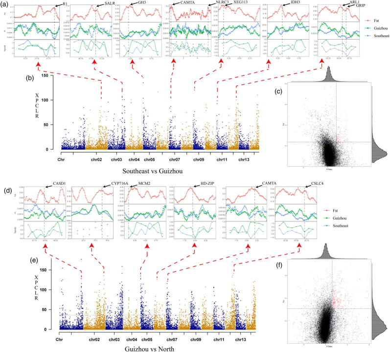 揭示關(guān)鍵適應(yīng)性基因:在貴州和華北群體中,研究檢測(cè)到與干旱、寒冷和病害抗性相關(guān)的選擇信號(hào)基因(如CYP716A, CAMTA,HD-ZIP等),解釋了不同地區(qū)無患子群體的環(huán)境適應(yīng)能力差異。