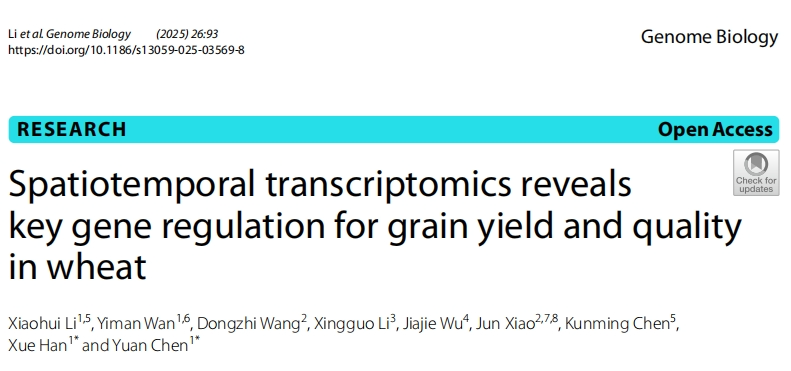 2025年4月11日,北京大學(xué)現(xiàn)代農(nóng)業(yè)研究院研究團(tuán)隊(duì)在Genome Biology發(fā)表研究論文。題為”Spatiotemporal transcriptomics reveals key gene regulation for grain yield and quality in wheat”。