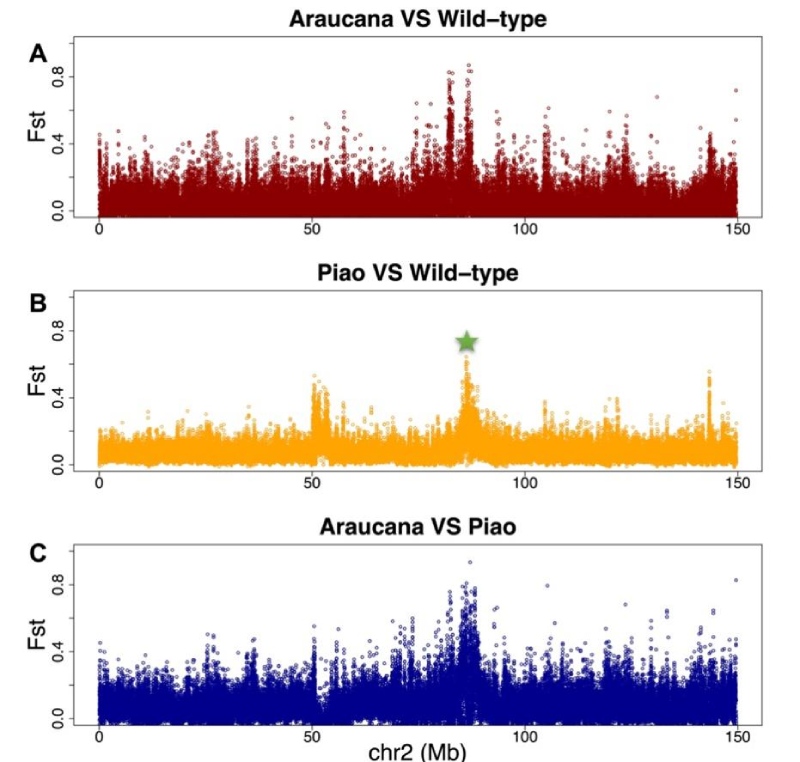 ]]>該研究以瓢雞和仙居雞為親本建立回交家系,以探索瓢雞無尾特征的遺傳機制和分子基礎(chǔ)。通過全基因組關(guān)聯(lián)和連鎖分析,研究人員將無尾性狀的候選區(qū)域精確定位到798.5 kb的區(qū)間內(nèi)(chr2:86.9-87.7 Mb)。