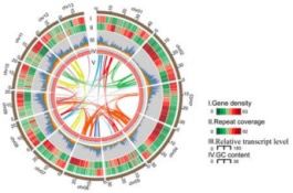 共預(yù)測得到33366個基因,平均每100Kb具有6.8個基因。非編碼RNA注釋結(jié)果為278 miRNAs, 1,395 tRNAs, 455 rRNAs, and 518 snRNAs。通過注釋已組裝基因組的50.96%為重復(fù)序列,其中LTR的比例占全基因組的38.64,包含Gypsy (30.52%) 和 Copia (5.48%)。