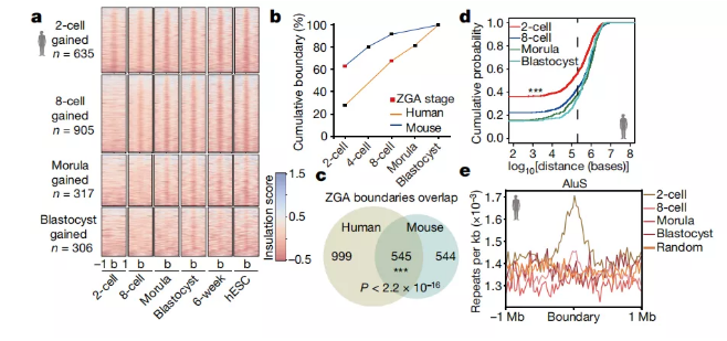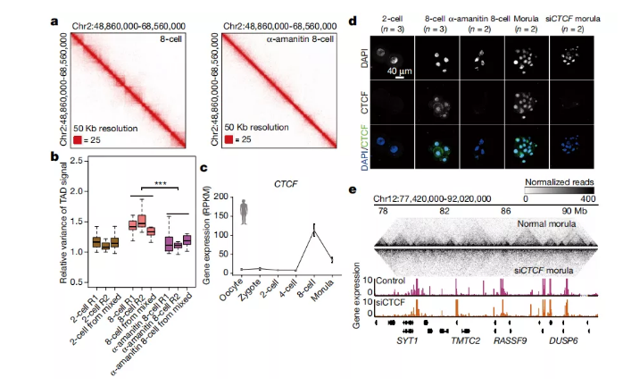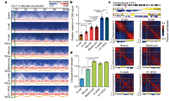 高質(zhì)量的參考基因組使研究人員直接通過比較基因組就能鑒定大的結(jié)構(gòu)變異成為可能。發(fā)現(xiàn)有170.2 Mb的基因組序列被鑒定為G. hirsutum和G. barbadense之間的倒位,包括120.4 Mb的At亞基因組和49.8 Mb的Dt在A06染色體中發(fā)現(xiàn)了4個大的倒位變異,包括3個染色體臂內(nèi)倒位(in1, in3 and in4)和1個染色體臂間倒位(in2),通過Hi-C數(shù)據(jù)在斷點(diǎn)周圍離散的染色質(zhì)相互作用(圖2a),突出了Hi-C技術(shù)識別大規(guī)模染色體重排的優(yōu)勢。光學(xué)圖(BioNano optical maps)譜數(shù)據(jù)進(jìn)一步支持了這些反轉(zhuǎn)斷裂位點(diǎn)(圖2b)。