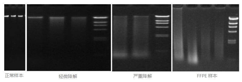 不同類(lèi)型樣本選擇合適的提取試劑盒,不同質(zhì)量DNA樣本選擇合適的提高有效文庫(kù)比例的建庫(kù)試劑盒。