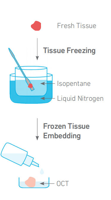 實(shí)驗(yàn)流程為:新鮮組織取樣-異戊烷凍存-OCT包埋-冷凍切片-染色-顯微鏡觀察-建庫測序 需要客戶準(zhǔn)備:新鮮組織取樣–異戊烷凍存(保存或運(yùn)輸)–OCT包埋–保存或運(yùn)輸 客戶在制備樣本時,需要準(zhǔn)備3份樣本(至少2份),每塊組織樣本不宜過大(長寬高約0.8 cm )