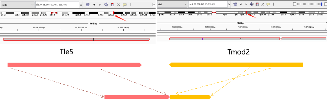空間三代全長(zhǎng)轉(zhuǎn)錄組可以對(duì)結(jié)構(gòu)進(jìn)行分析。在50μm(Level7)分辨率下,對(duì)各Culster的可變剪接的事件數(shù)量進(jìn)行了分析。結(jié)果顯示外顯子跳躍的類(lèi)型最多。除可變剪接外,針對(duì)融合基因分析的結(jié)果同樣進(jìn)行了展示。